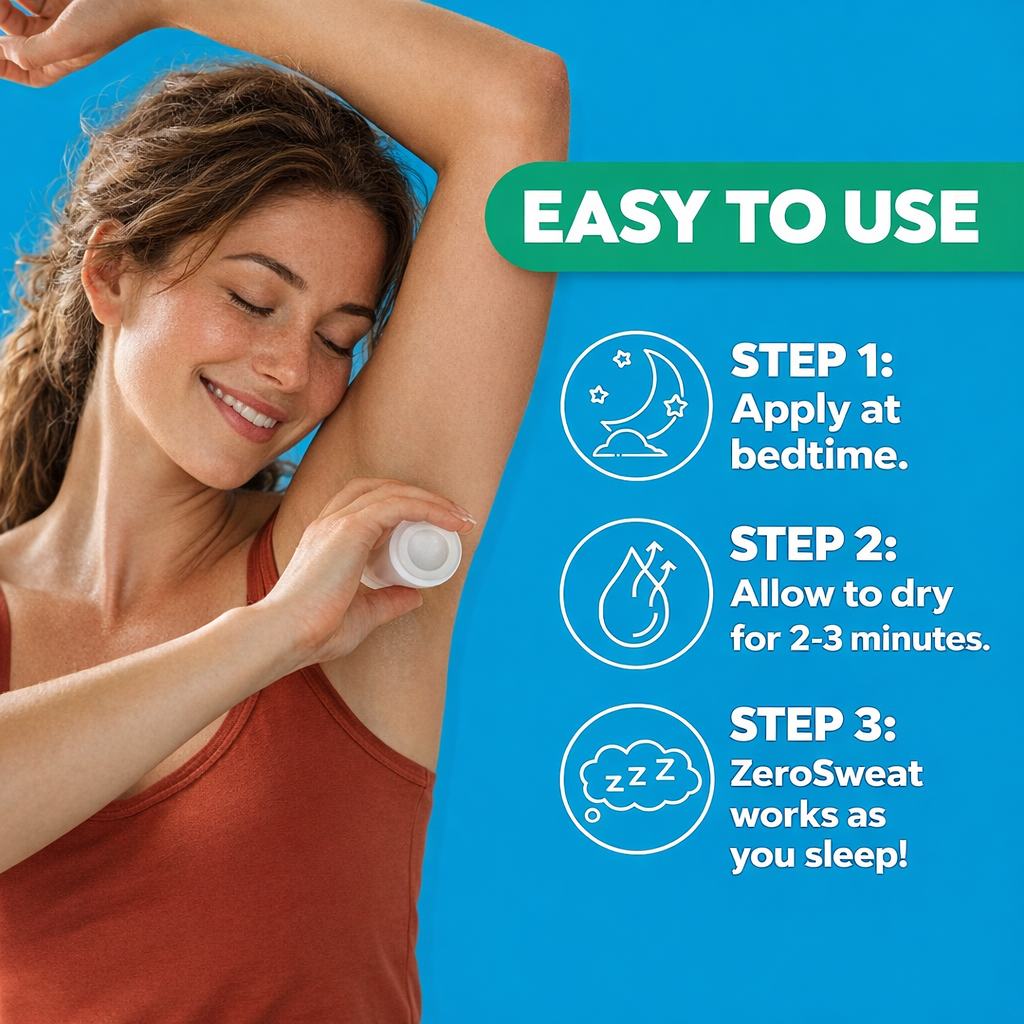 Easy-to-use - ZeroSweat goes on at night and works while you sleep.